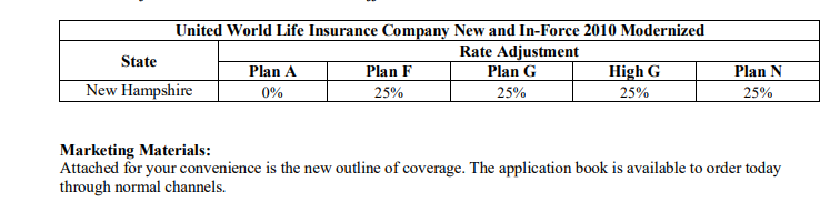 The following rate adjustments are effective January 1, 2026, for new business on 2010 Modernized Medicare supplement policies